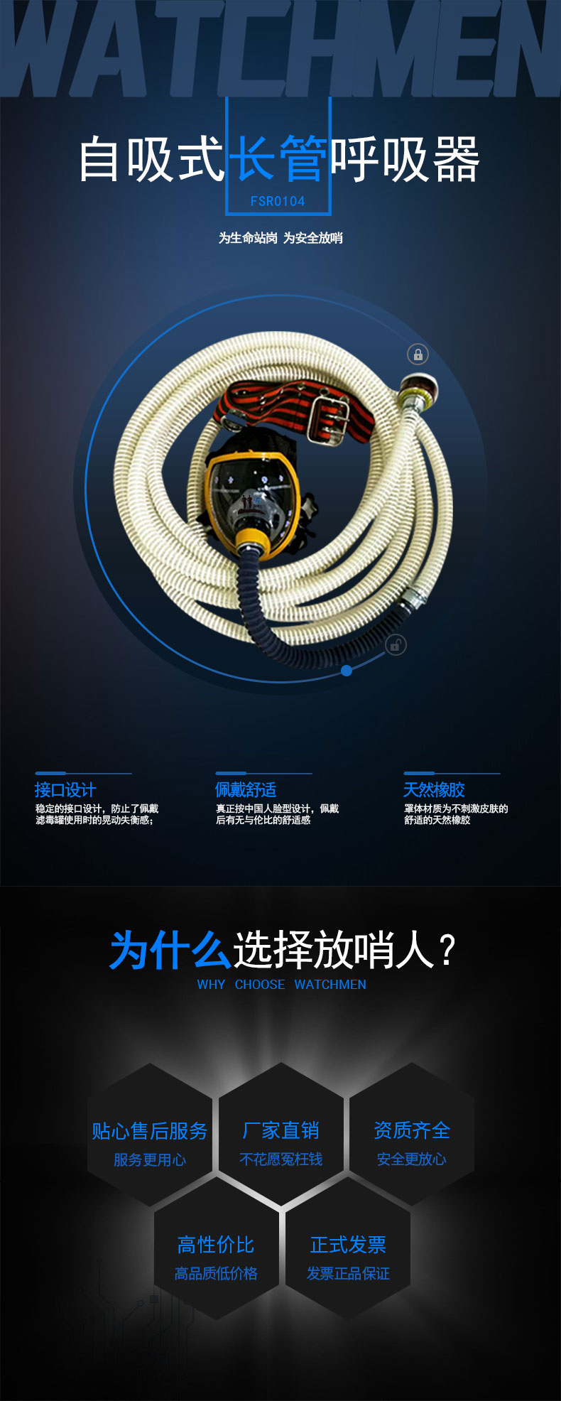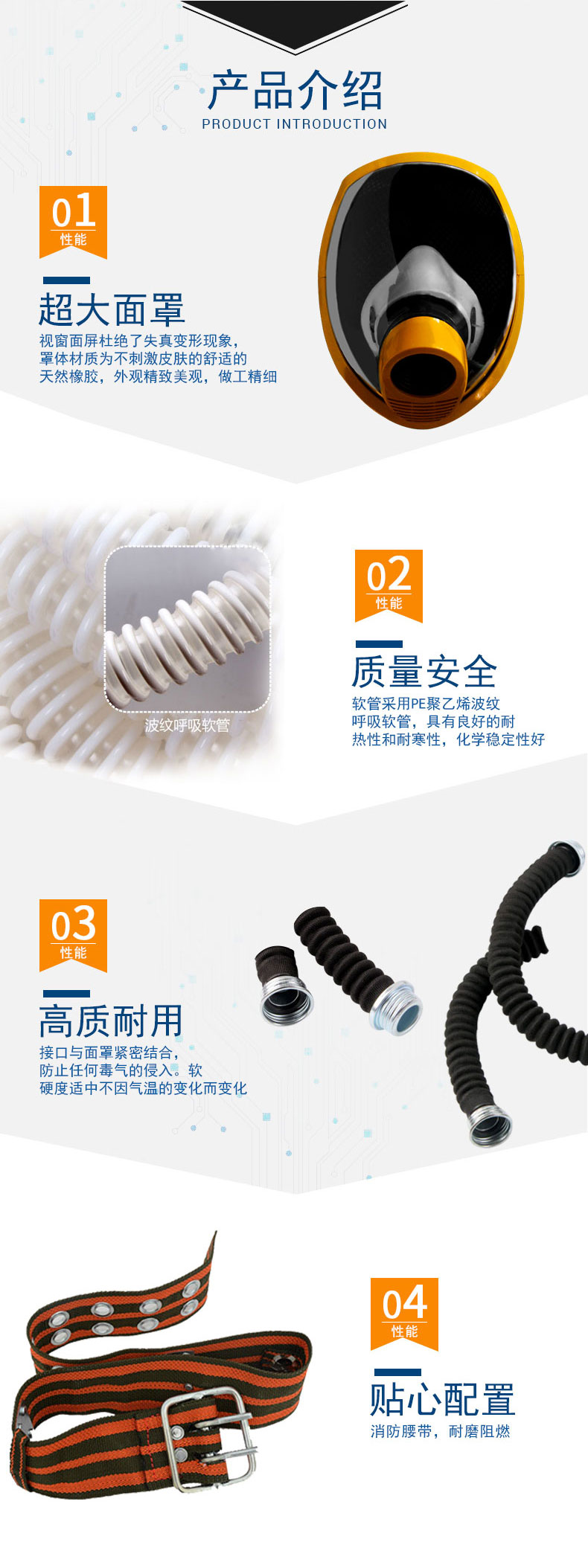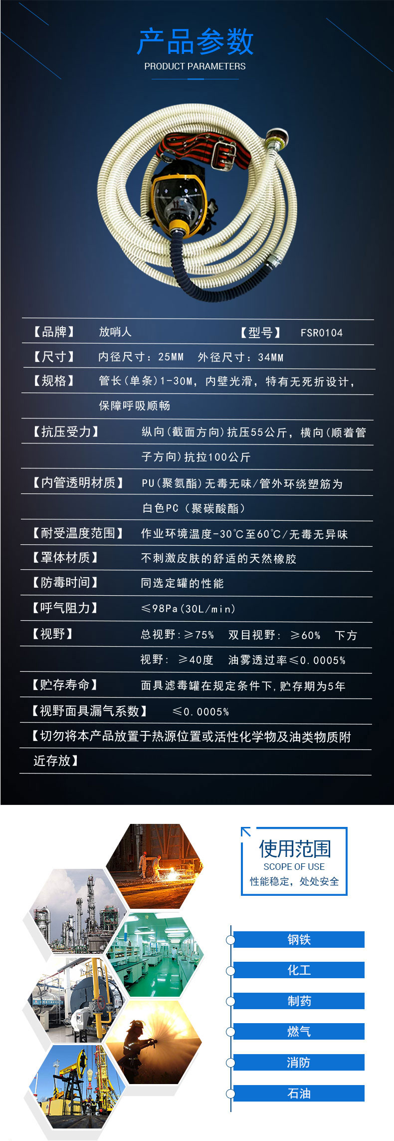 本公司經營長管空氣呼吸器系列產品是依據GA6220-2009長管面具標準生產的個人防護裝備,面罩采用大視野防霧耐磨全密合面罩,使用長管為聚氨酯材質,無毒無味,適用于缺氧及有煙、粉塵、蒸汽等有害氣體環境中工作,在地下管道等狹窄空間使用更具優越性,本產品廣泛用于石油、化工、煤氣、冶煉、倉庫、市政等行業,質量保證,售后完善!