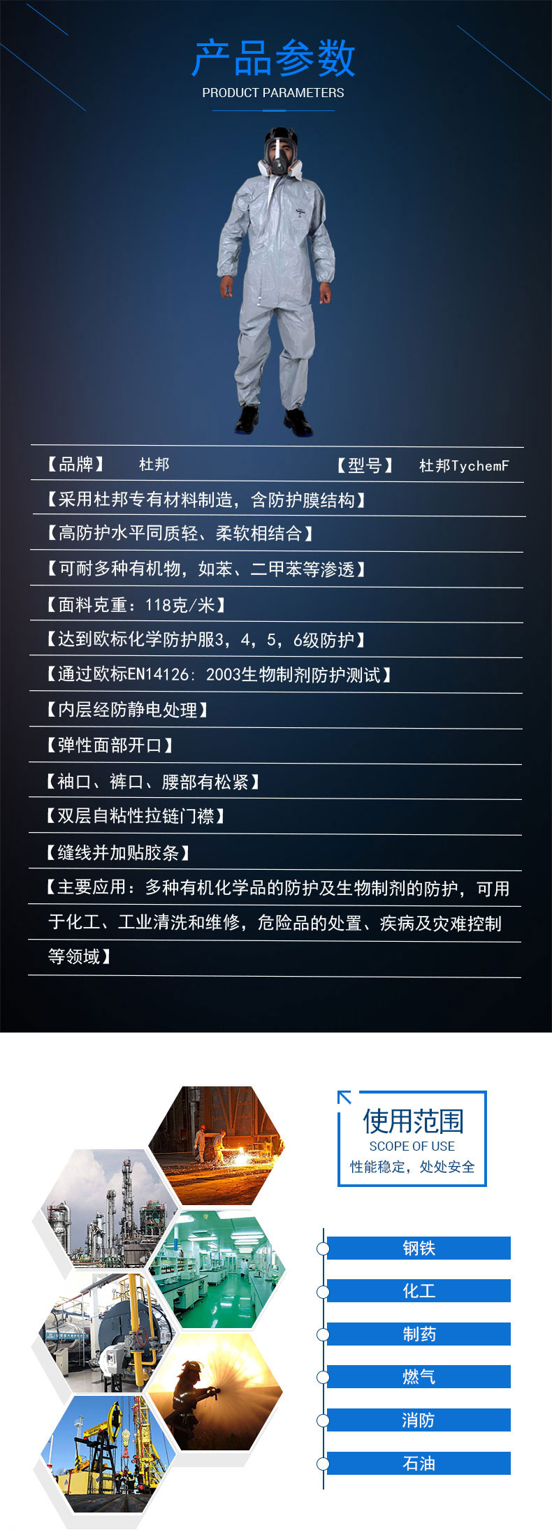 多種有機(jī)化學(xué)品的防護(hù)及生物制劑的防護(hù),可用于化工、工業(yè)清洗