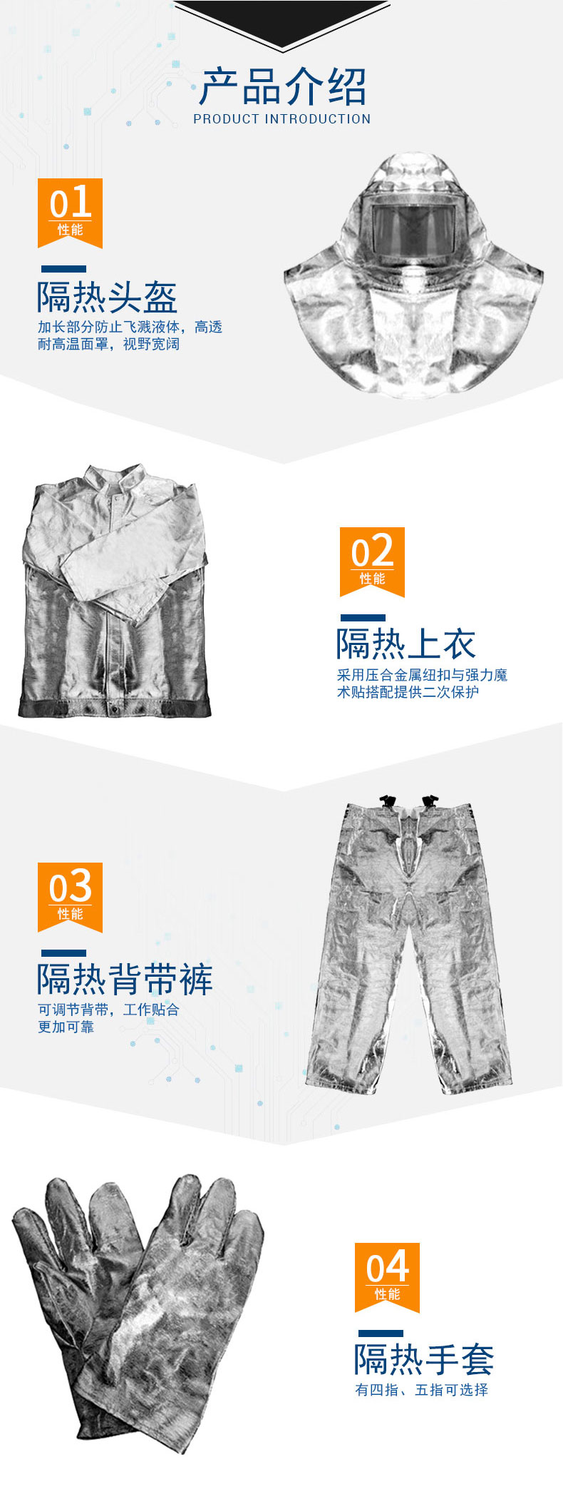 2 整套隔熱服包括上衣、褲子、頭罩、手套和腳罩