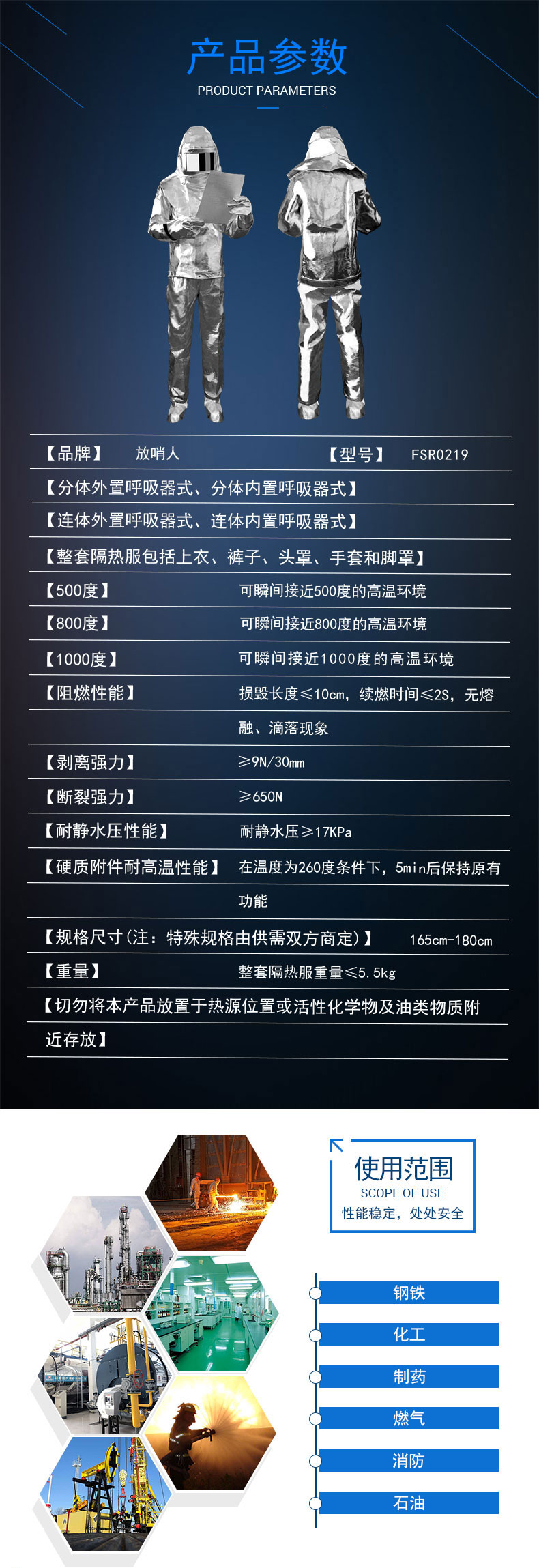 2 重量:整套隔熱服重量≤5.5kg