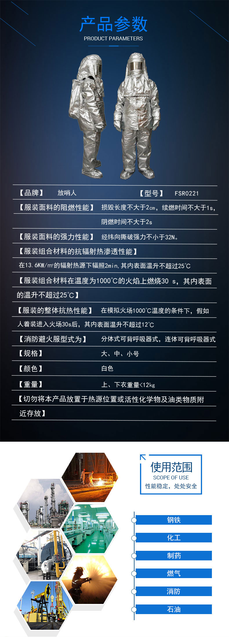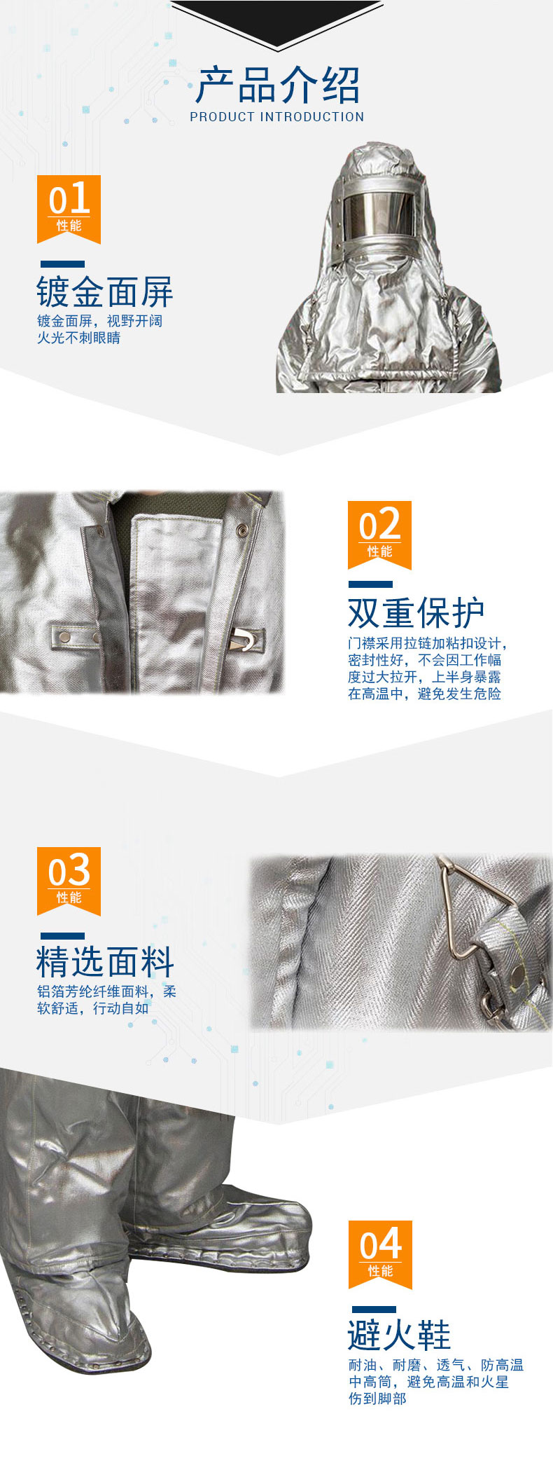 2 整套隔熱服包括上衣、褲子、頭罩、手套和腳罩