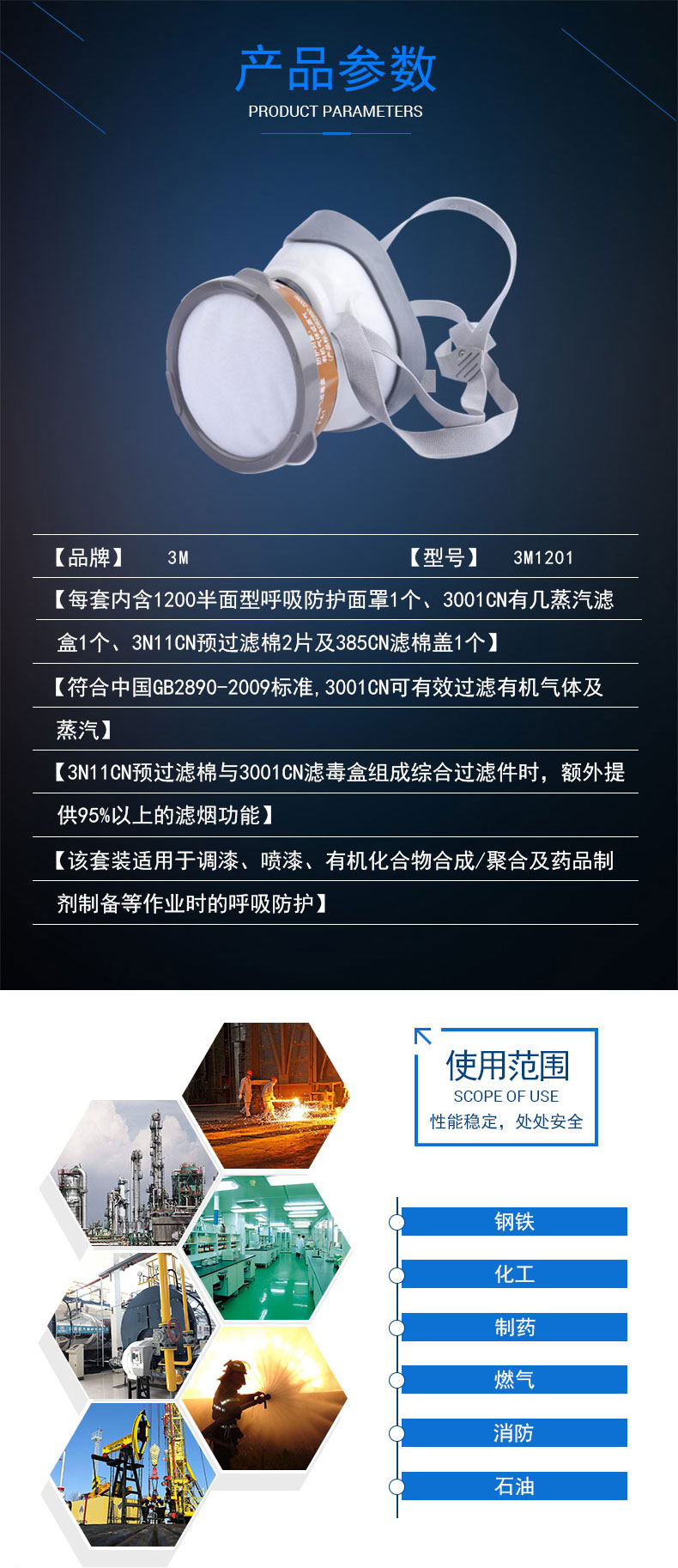 該套裝適用于調漆、噴漆、有機化合物合成/聚合及藥品制劑制備等作業時的呼吸防護。
