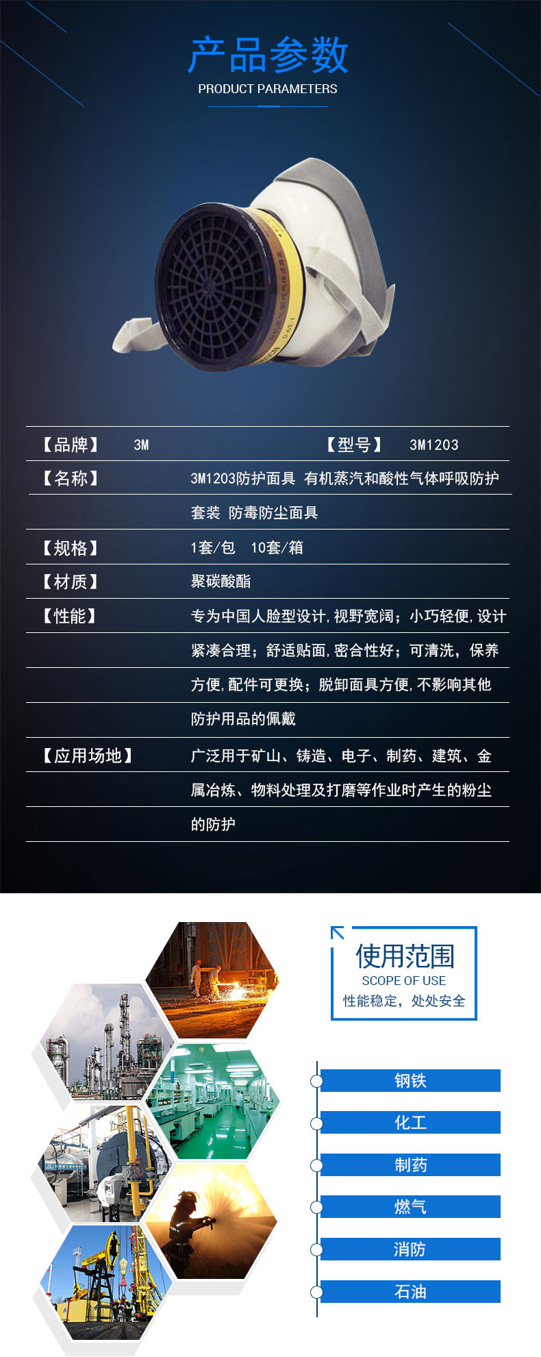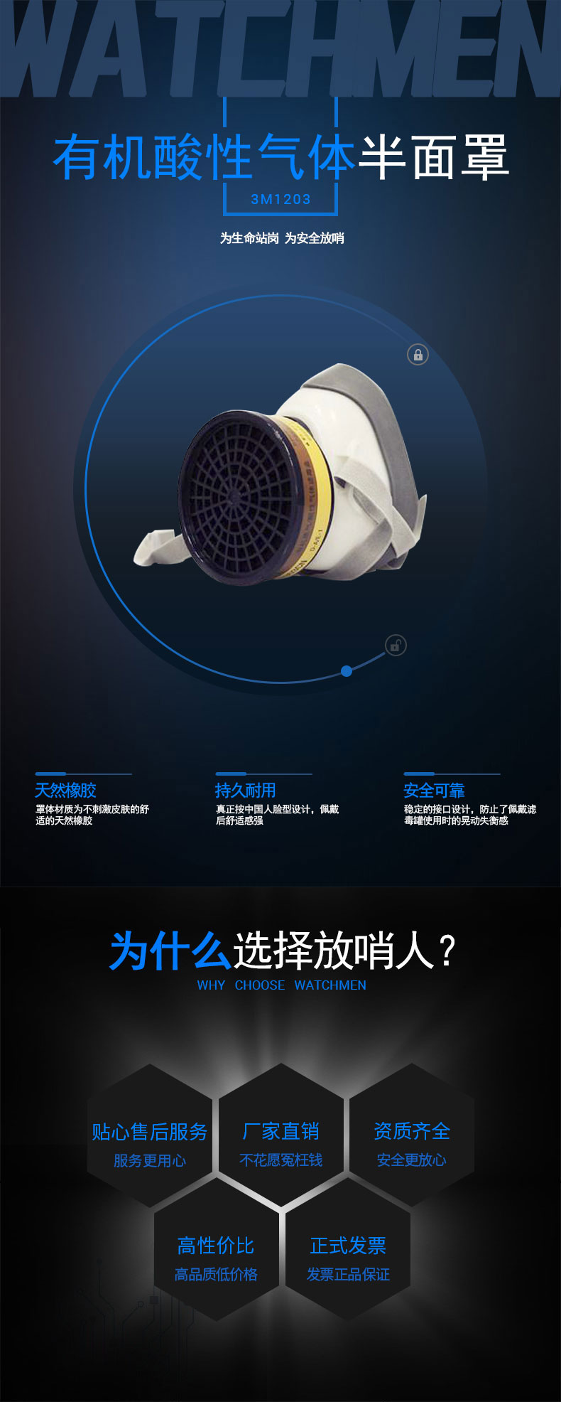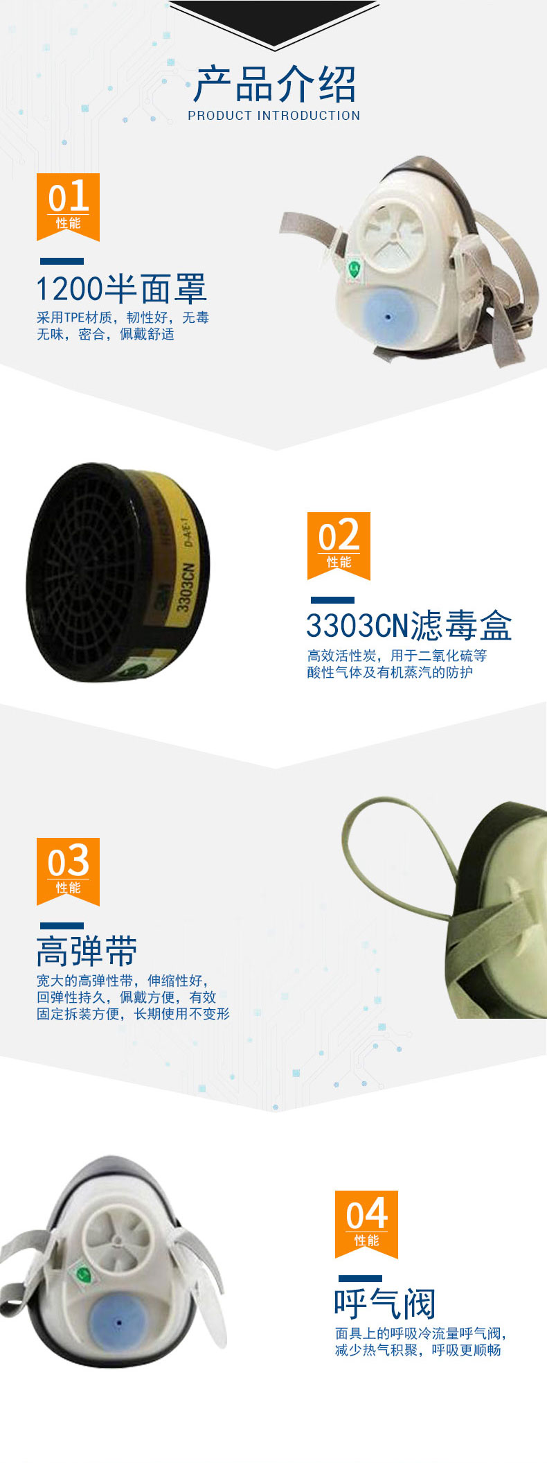 3M1203防毒面罩配套3M3303CN有機(jī)蒸氣/酸性氣體濾毒盒