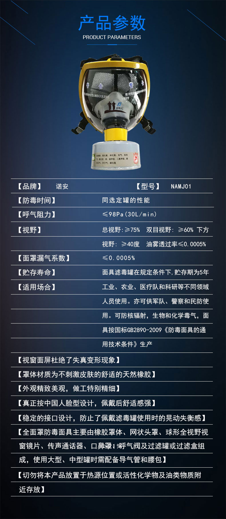 適用場(chǎng)合:工業(yè)、農(nóng)業(yè)、醫(yī)療隊(duì)和科研等不同領(lǐng)域人員使用。亦可供軍隊(duì)、警察和民防使用。可防核輻射,生物和化學(xué)毒氣,面具按國(guó)標(biāo)GB2890—95《防毒面具的通用技術(shù)條件》生產(chǎn)