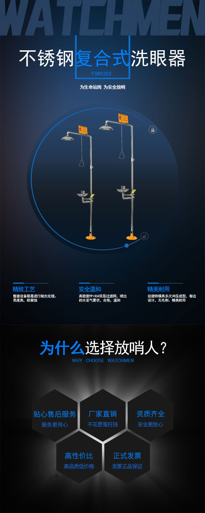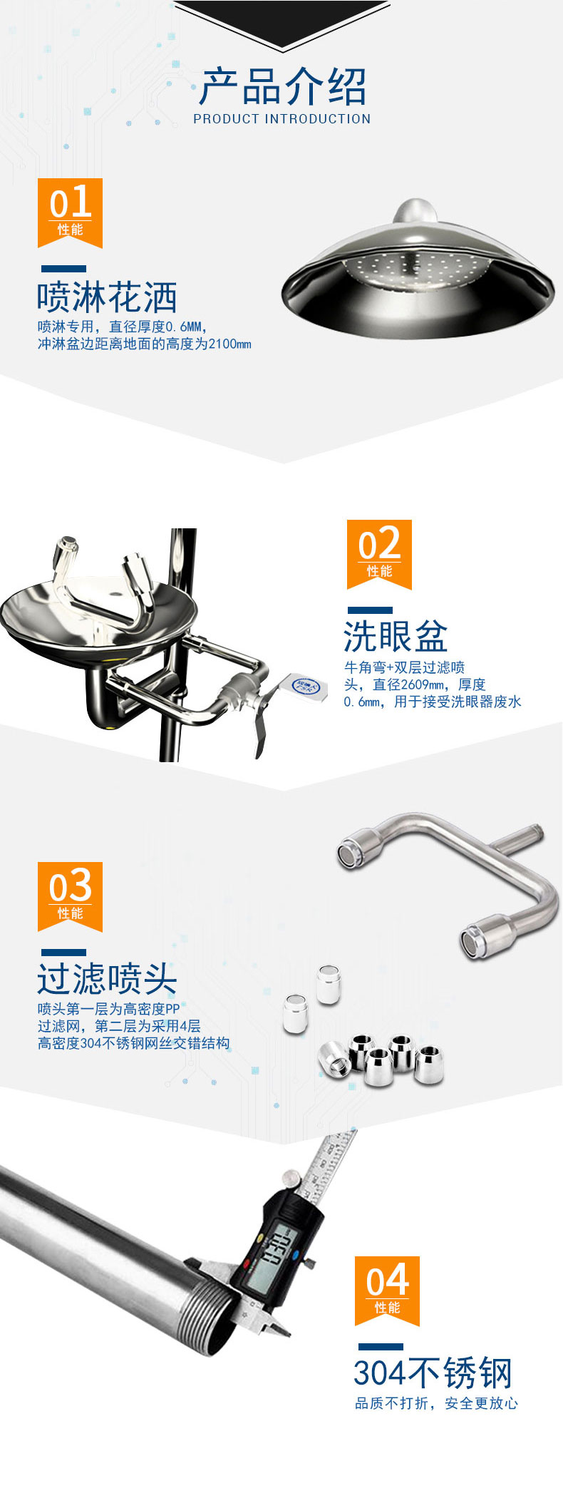 8. 洗眼盆:選用1MM洗眼加厚直邊盆,聚水更集中,防止水花飛濺。